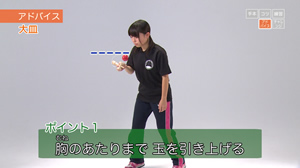 3.「いっしょに練習」では、先生の動きに合わせていっしょに練習します。ひざや手首の使い方をまねして、先生とリズムを合わせて、たくさん練習してね。